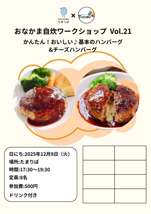 おなかま自炊ワークショップ かんたん!おいしい♪基本のハンバーグ&チーズハンバーグ